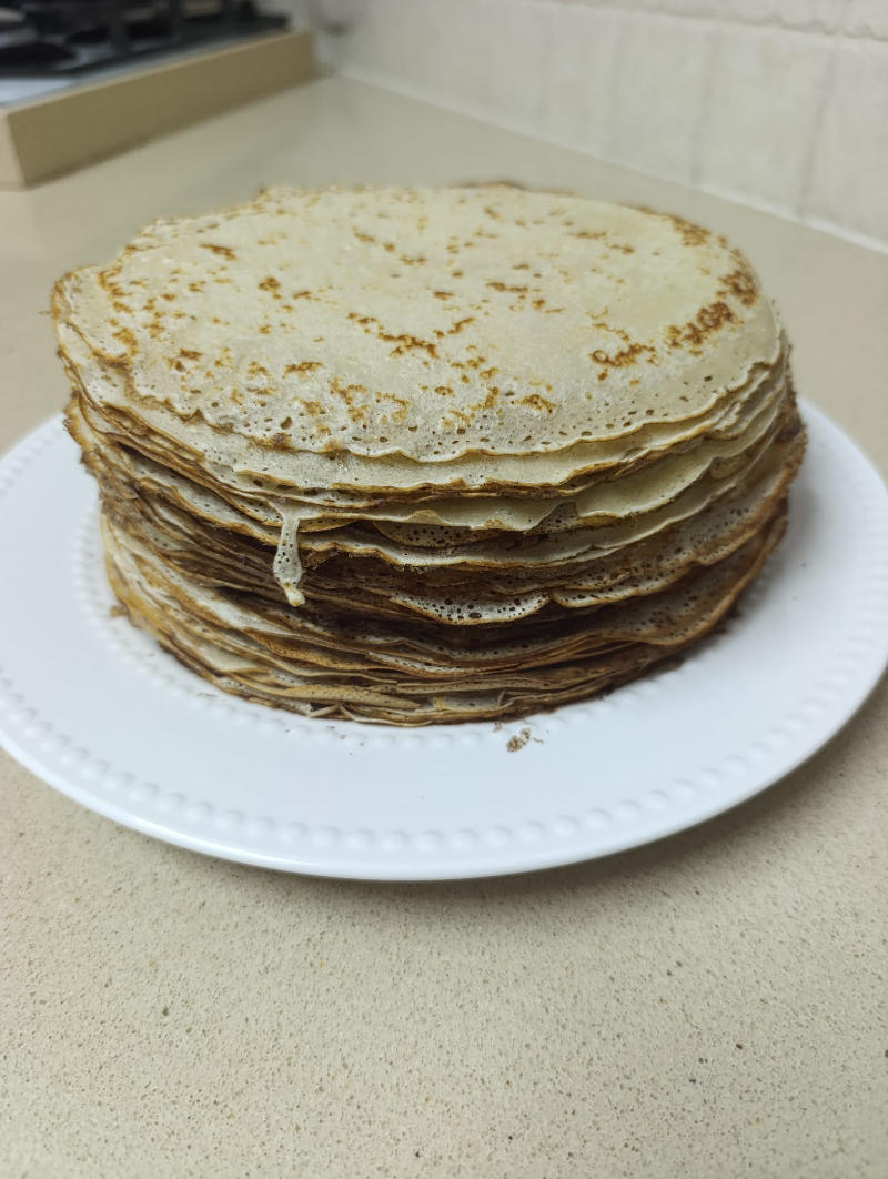 Состав: молоко, мука пшеничная, яйцо, соль и сода пищевая. Цена указана за кг. В 1кг 25 блинчиков.