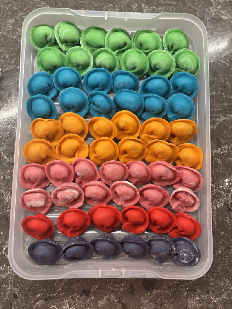 Состав: Тесто: мука пшеничная, вода, соль, пищевые красители. Начинка: говядина или курица или говядина/курица, лук, соль, перец. Цена указана за кг